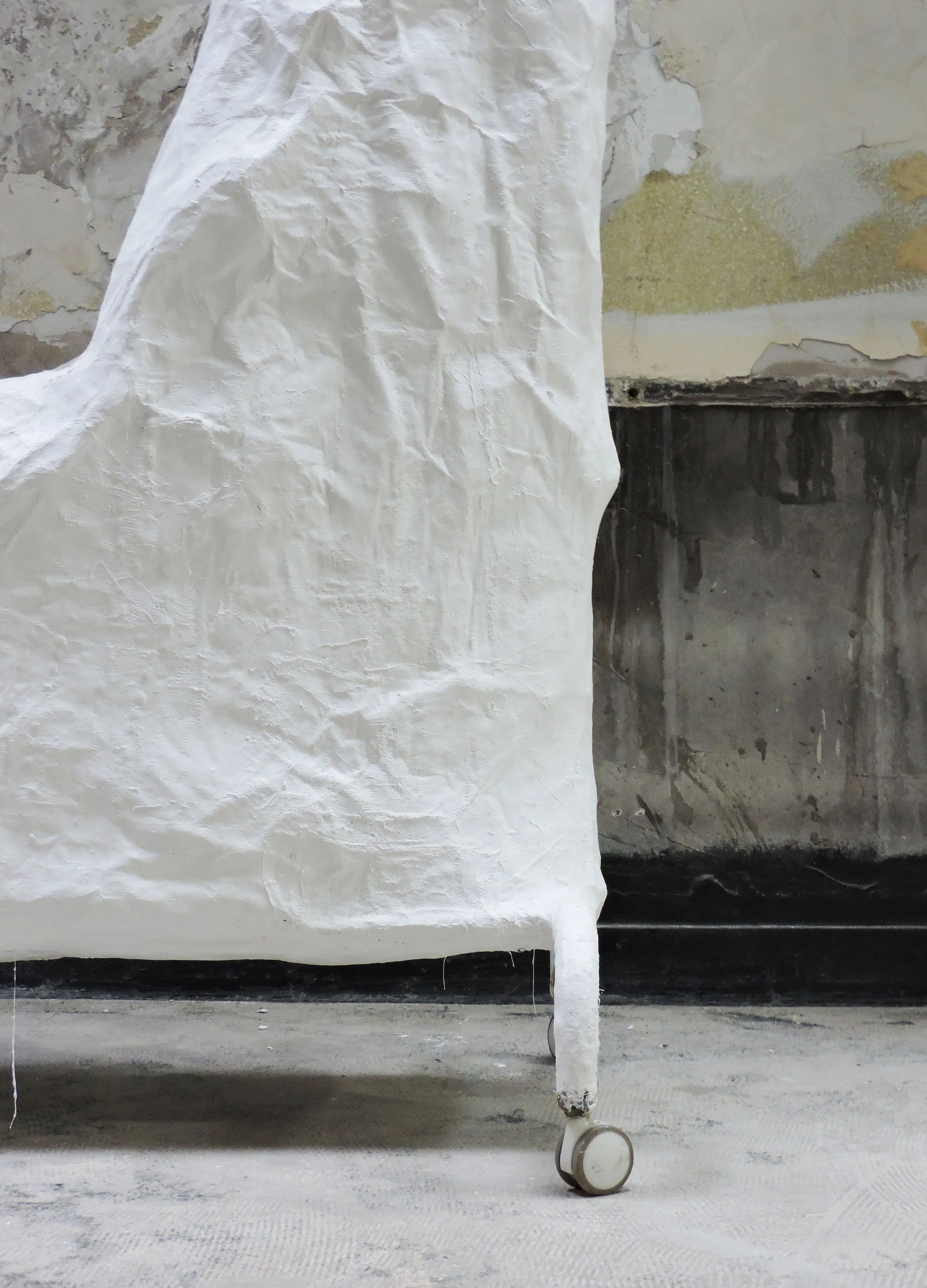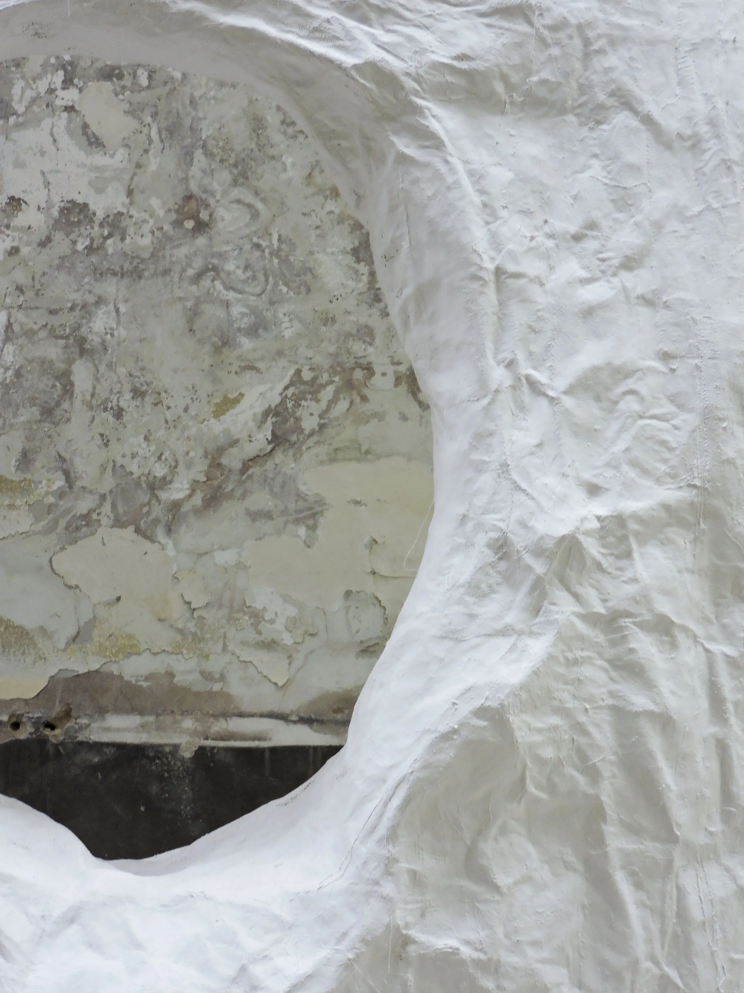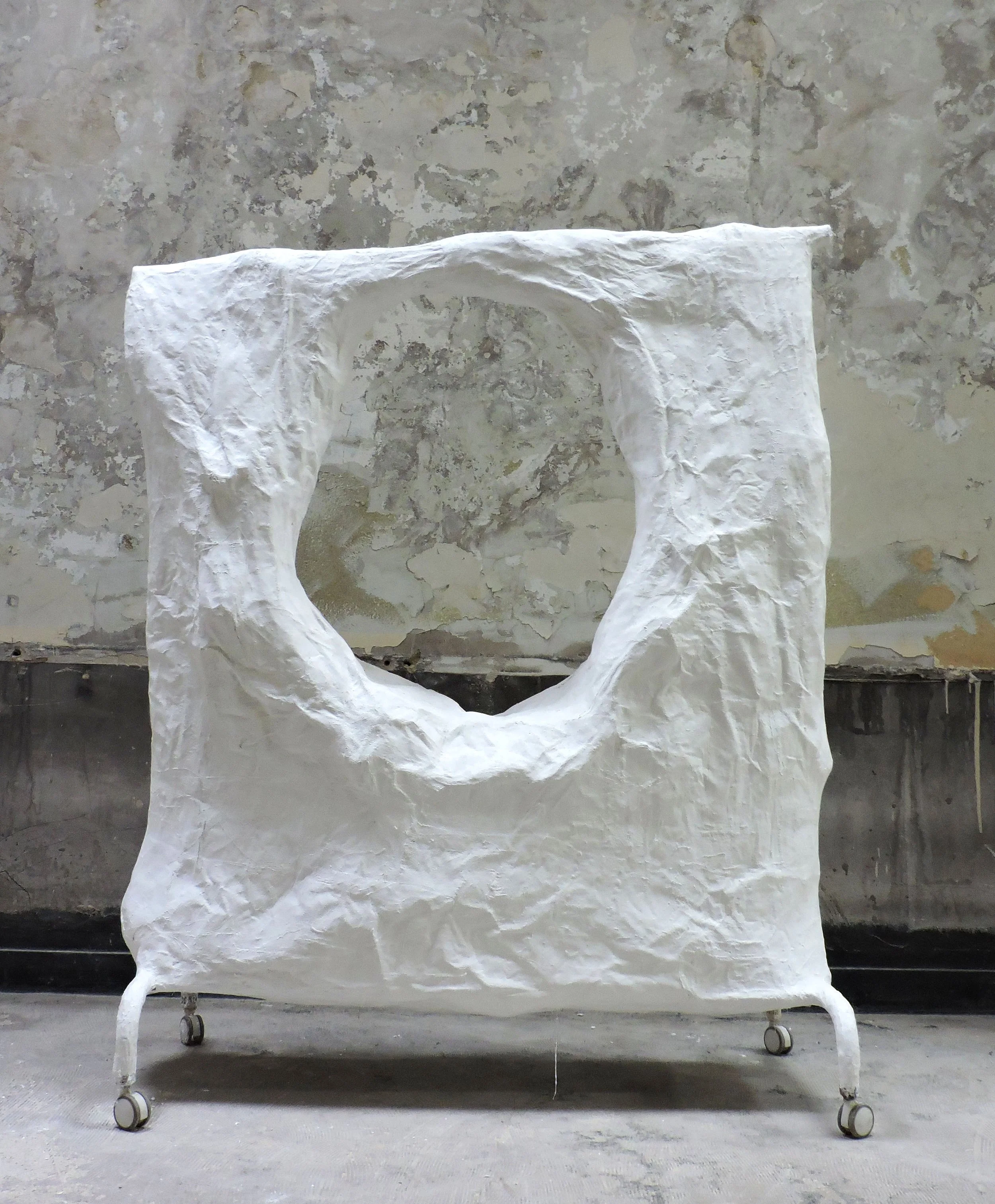 Found object, recycled bubble-wrap, plaster, shredded paper